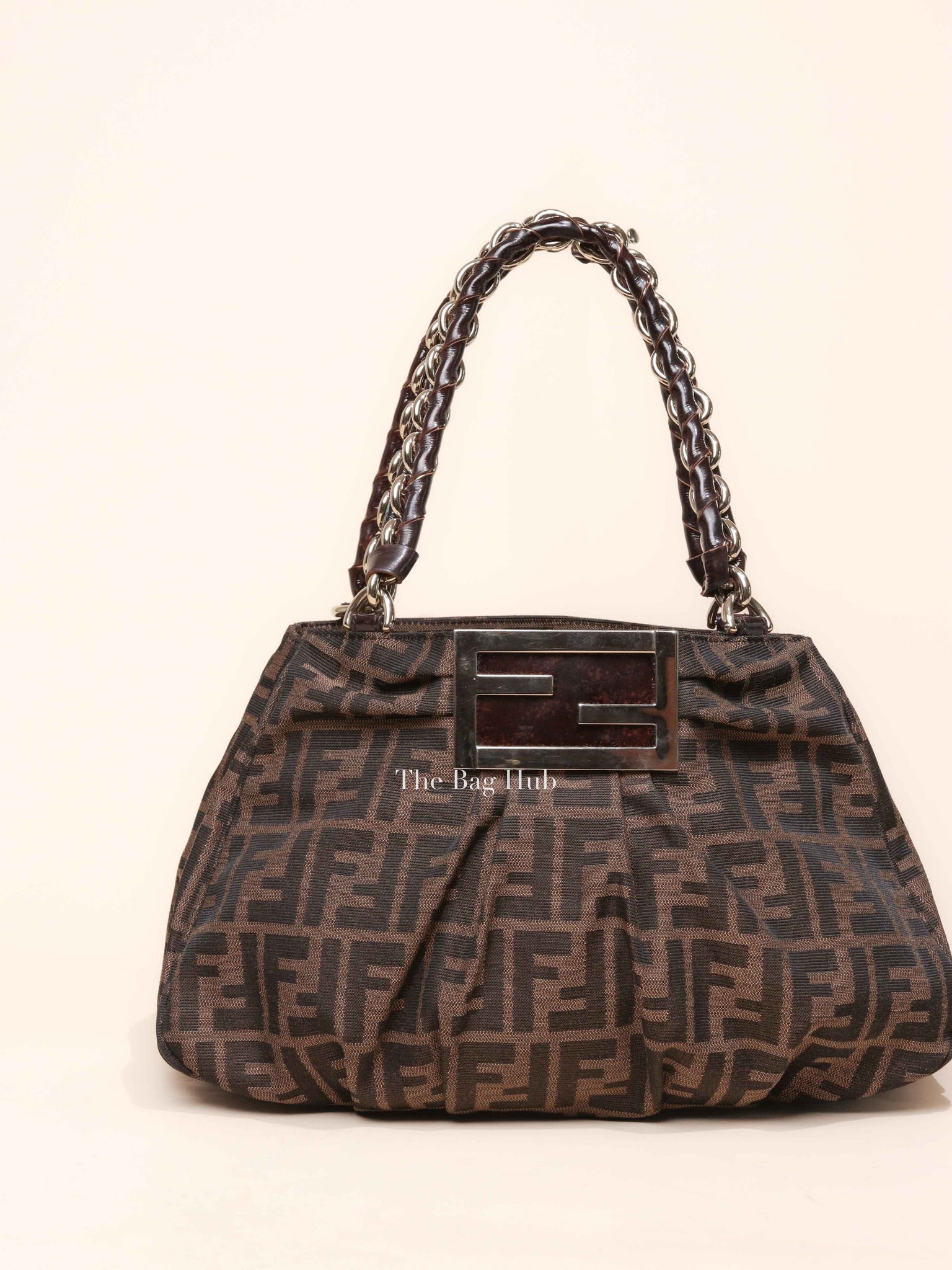 Fendi Brown Monogram Canvas FF Zucca Mia Chain Shoulder Bag