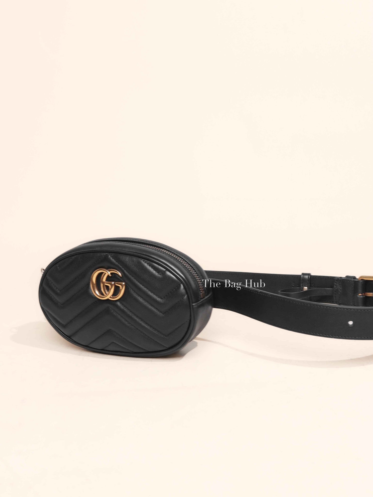 } Gucci Black Leather GG Marmont Waist Belt Bag | Designer Brand | Authentic Gucci | The Bag Hub