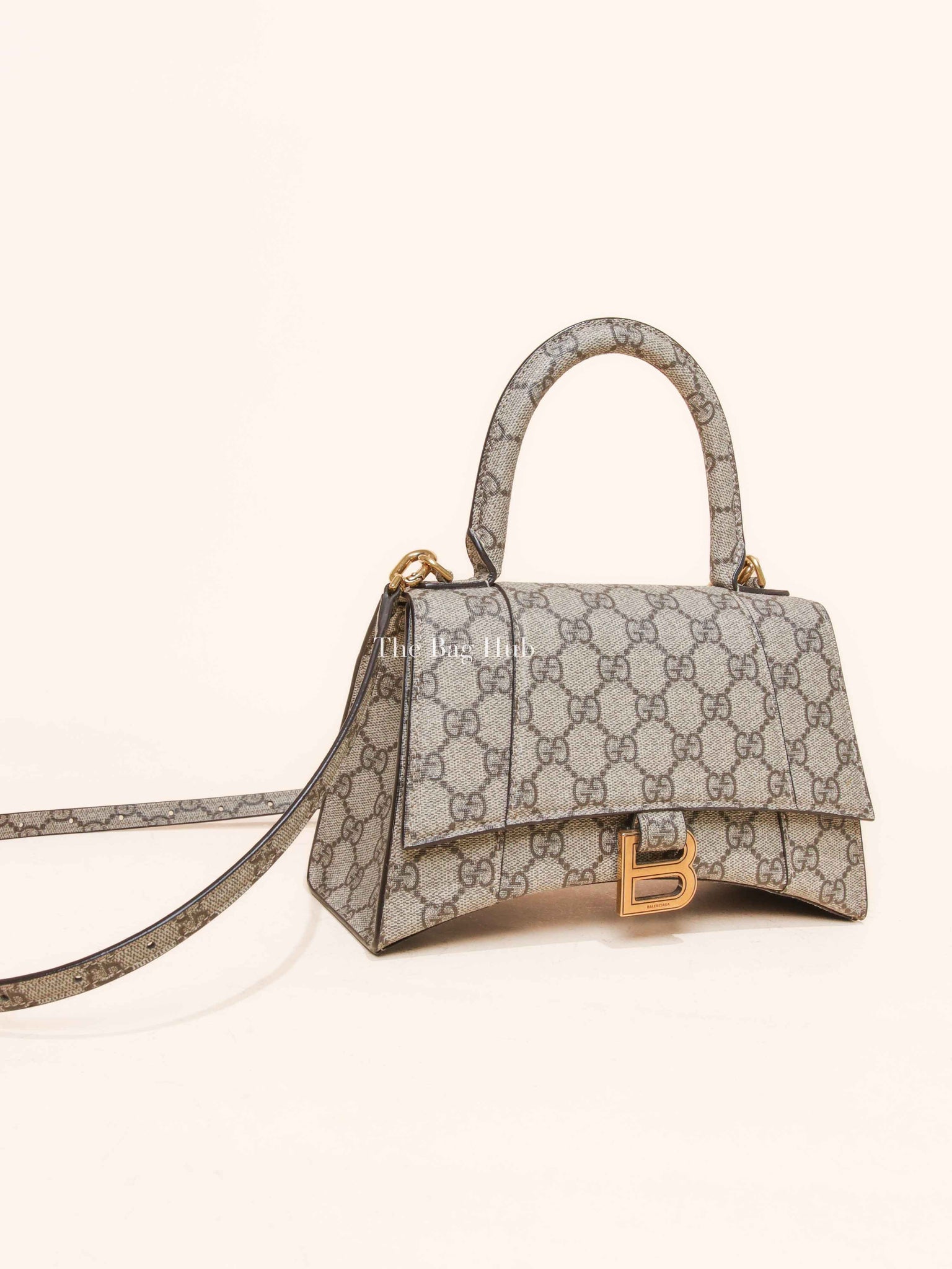 Gucci x Balenciaga Beige/Brown GG Supreme Canvas Hourglass Top Handle Bag