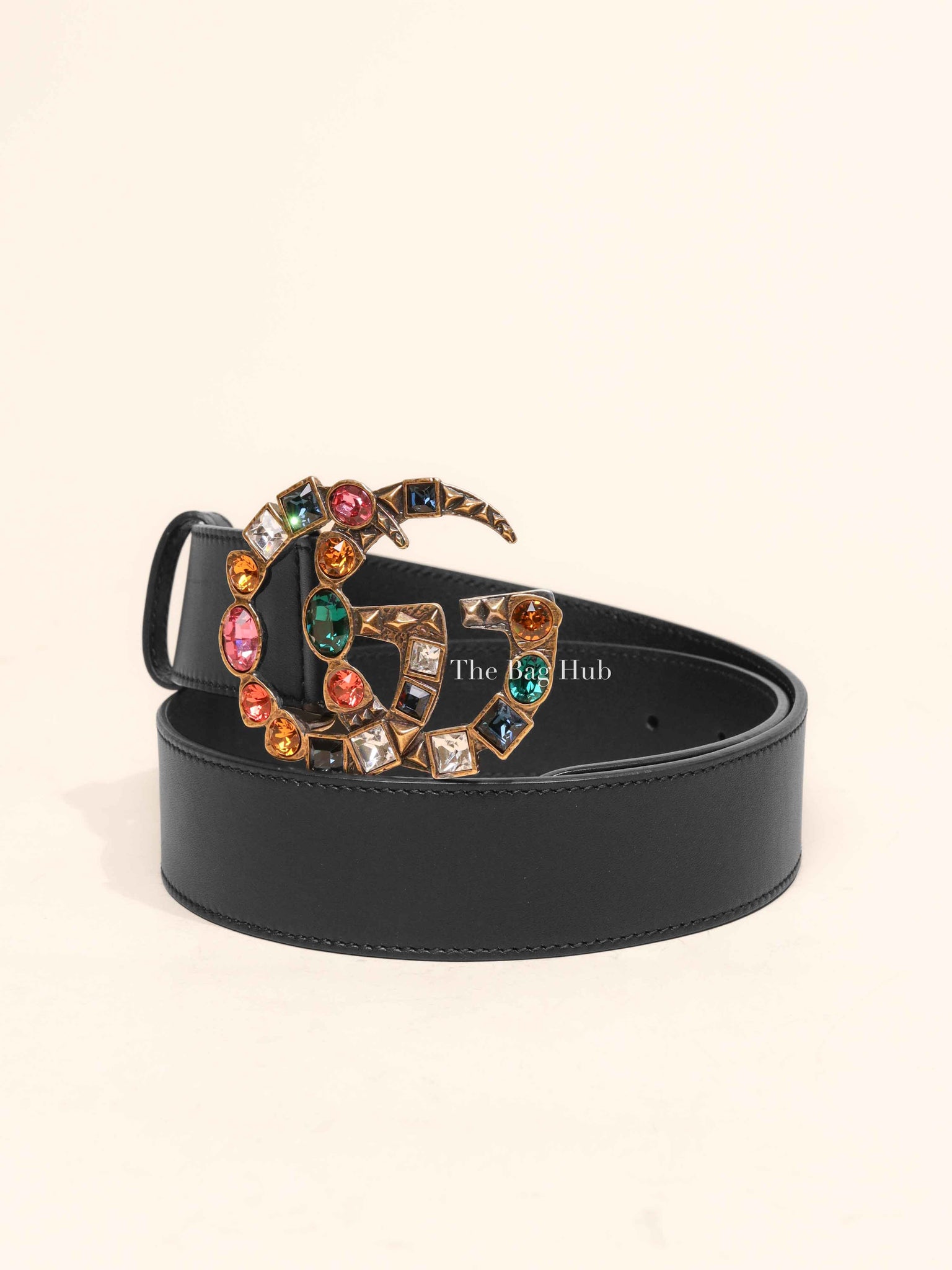 Gucci Black Calfskin Multicolor Crystal GG Belt 80/32